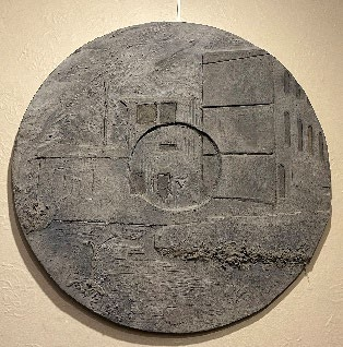 Hallborg’s work, which he calls Cement Painting, transforms cement applied to wooden panels into lowrelief sculptures he refers to as Glyphs. His artist statement emphasizes the interplay of material and meaning: by reimagining cement as a medium for symbolic expression, he bridges painting and sculpture. Hallborg’s Glyphs invite audiences to explore texture, form, and interpretation, reflecting his multidisciplinary background and commitment to experimentation.